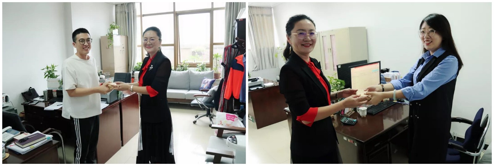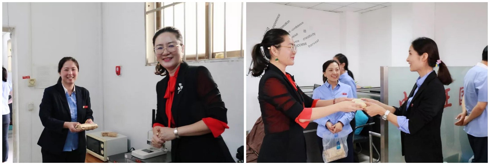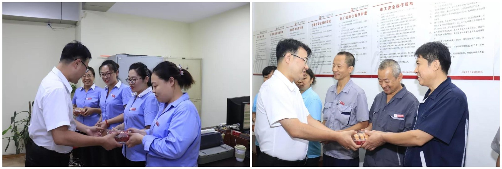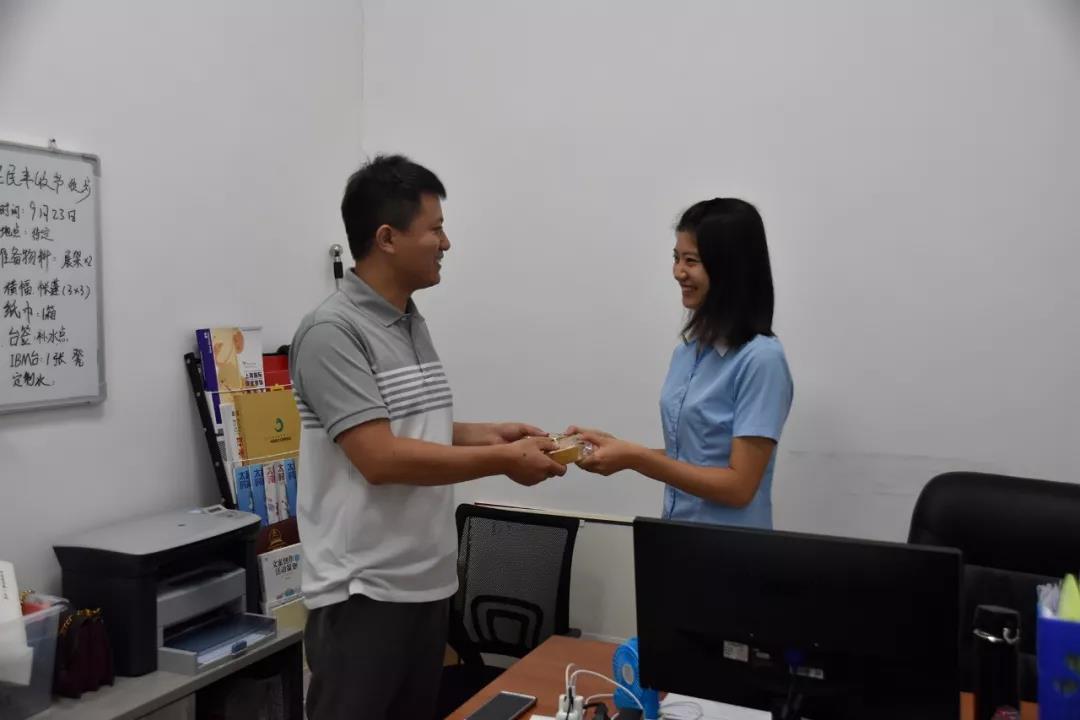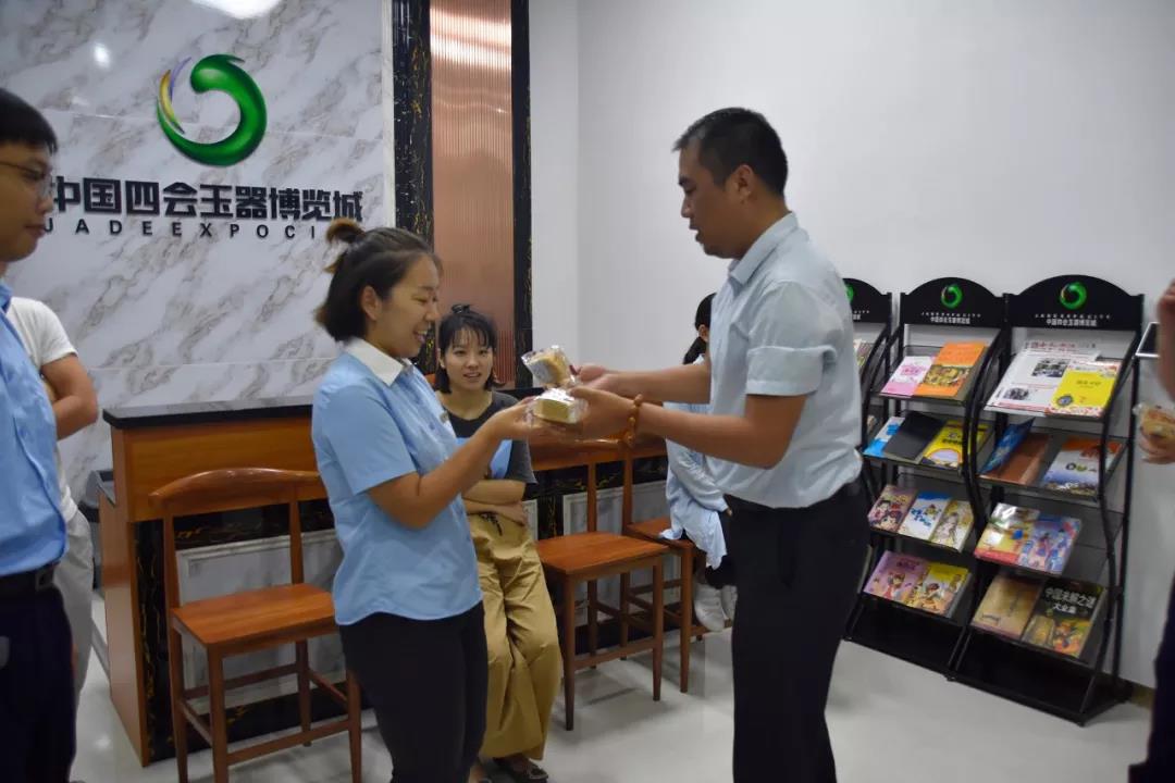 继李总慰问视察玉博城后 ,,,,,9月13日上午非凡国际集团商业运营中心总司理兼四会玉博城总司理杨遇春、四会玉博城常务副总司理臧单单等向导对节日时代坚守事情岗位的宽大员工举行走访慰问 ,,,,,亲手送上了香甜的月饼 ,,,,,并对各人致以优美祝福。。。。。