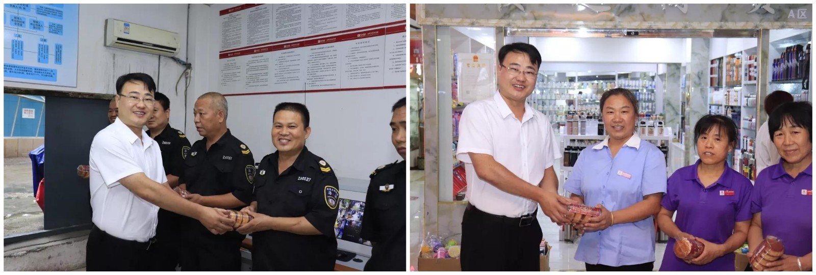 9月13日上午 ,,,,,非凡国际集团副总司理、非凡国际文化礼物城总司理陈暇携商城中层治理职员来到商城下层 ,,,,,慰问节日时代坚守在事情岗位的一线员工 ,,,,,将节日的祝福和问候带给各人。。。。。