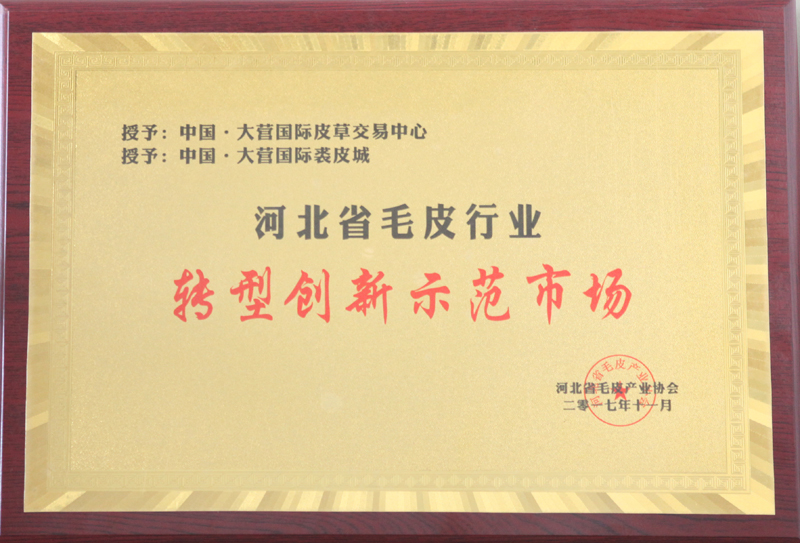 中国·大营国际皮草生意中心 中国·大营国际裘皮城 荣获 河北省毛皮行业转型立异树模市场