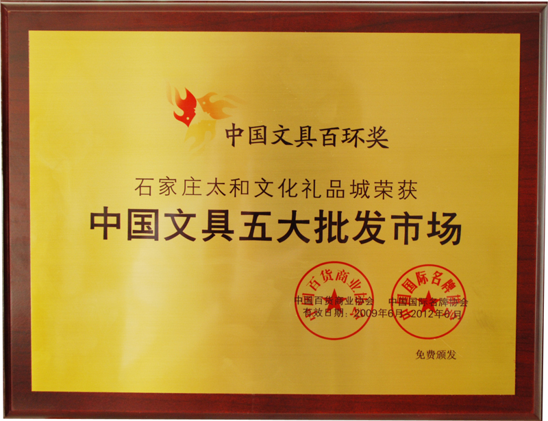 非凡国际文化礼物城荣获 中国文具五大批发市场
